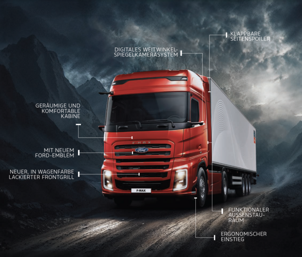 Der F-MAX bietet mit dem neuen Ecotorq GEN 2.0 Motor mit 510 PS und einem Drehmoment von 2600 Nm auf allen Straßen maximale Leistung bei minimalem Kraftstoffverbrauch. Das verbesserte aerodynamische Design, das automatisierte 16-Gang-Overdrive -Getriebe , die intelligenten Fahrmodi und die nahtlosen Schaltvorgänge sorgen für ein unvergleichliches Fahrerlebnis. Mit dem neuen digitalen Spiegelkamerasystem und der vorderen Luftfederung entsteht ein unübertroffener Fahrkomfort sowie maximale Sicherheit im Straßenverkehr.